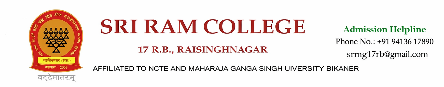 Sri Ram College, 17 R. B., Raisinghnagar, Sri Ganganagar, is the most reputed and premier college of the region. It carries with it a rich history which dates back to 2012, the year of its establishment. it is a graduate degree college, which is recognized under Section 2(f) and 12(b) in the UGC Act, 1956.